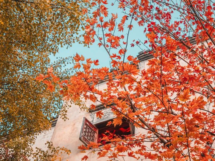 一樹紅葉似丹砂,現在篁嶺古村被紅楓點綴得如詩如畫,在秋風的吹拂下,葉子沙沙作響,遠遠望去,那一抹艷紅,燦若云霞。接下來的12月,將是賞紅楓的最佳時期,千年楓香也將壓軸登場。