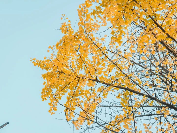 現在金黃色的銀杏葉掛滿了枝頭,秋風一吹,黃色的銀杏葉漫天飛舞,鋪一地金黃,浪漫至極。銀杏葉將在12月達到最佳觀賞期。