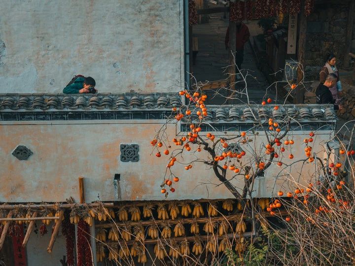 滿樹紅彤彤的柿子如同盞盞燈籠,點亮了清冷的秋。現在篁嶺的柿子樹是人們寵愛的對象,路過的游客都忍不住駐足拍照。隨著樹葉慢慢落光,圓溜溜的柿子掛滿枝頭,在陽光的照耀下,紅得透亮。