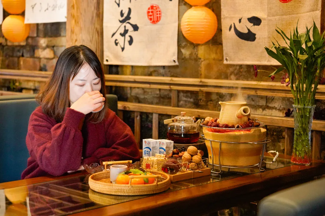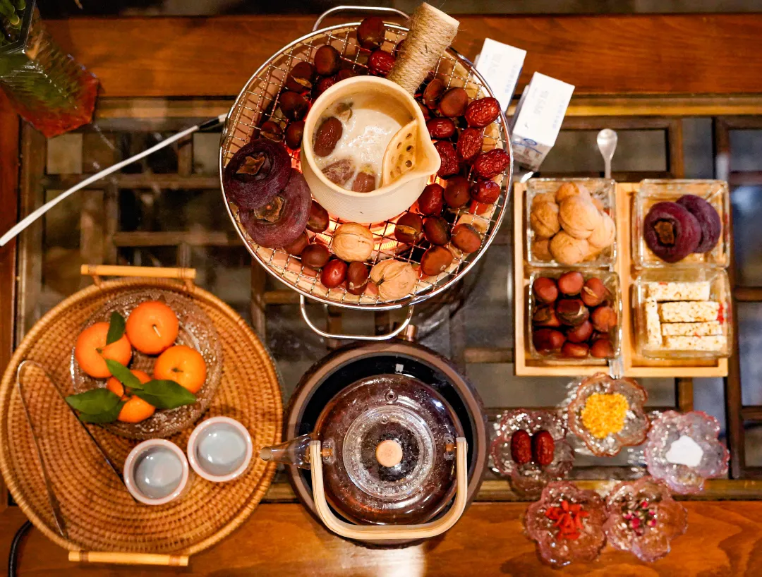 在篁嶺的初冬時光里,怎能少了一杯香甜的烤奶?炭火烤著香濃的鮮奶,烤柿子、烤紅棗、烤橘子也散發出誘人的香氣,喝上一口熱乎乎的烤奶,暖身又暖心。