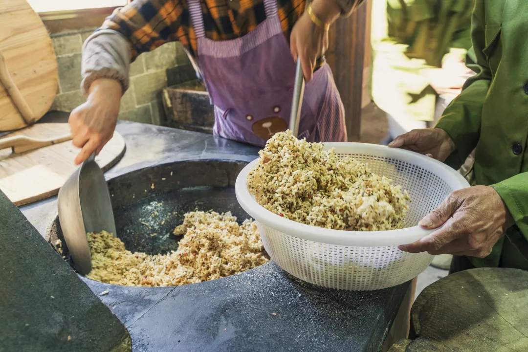 在村口,你會看到熱情的村姑手捧自家釀造的美酒,笑臉相迎,那一碗碗香醇的酒,不僅是對遠方來客的誠摯歡迎,更承載著篁嶺人質樸好客的民風。不喝這碗攔門酒,今天你就莫想走!快接過這碗香甜的米酒,一飲而盡吧!