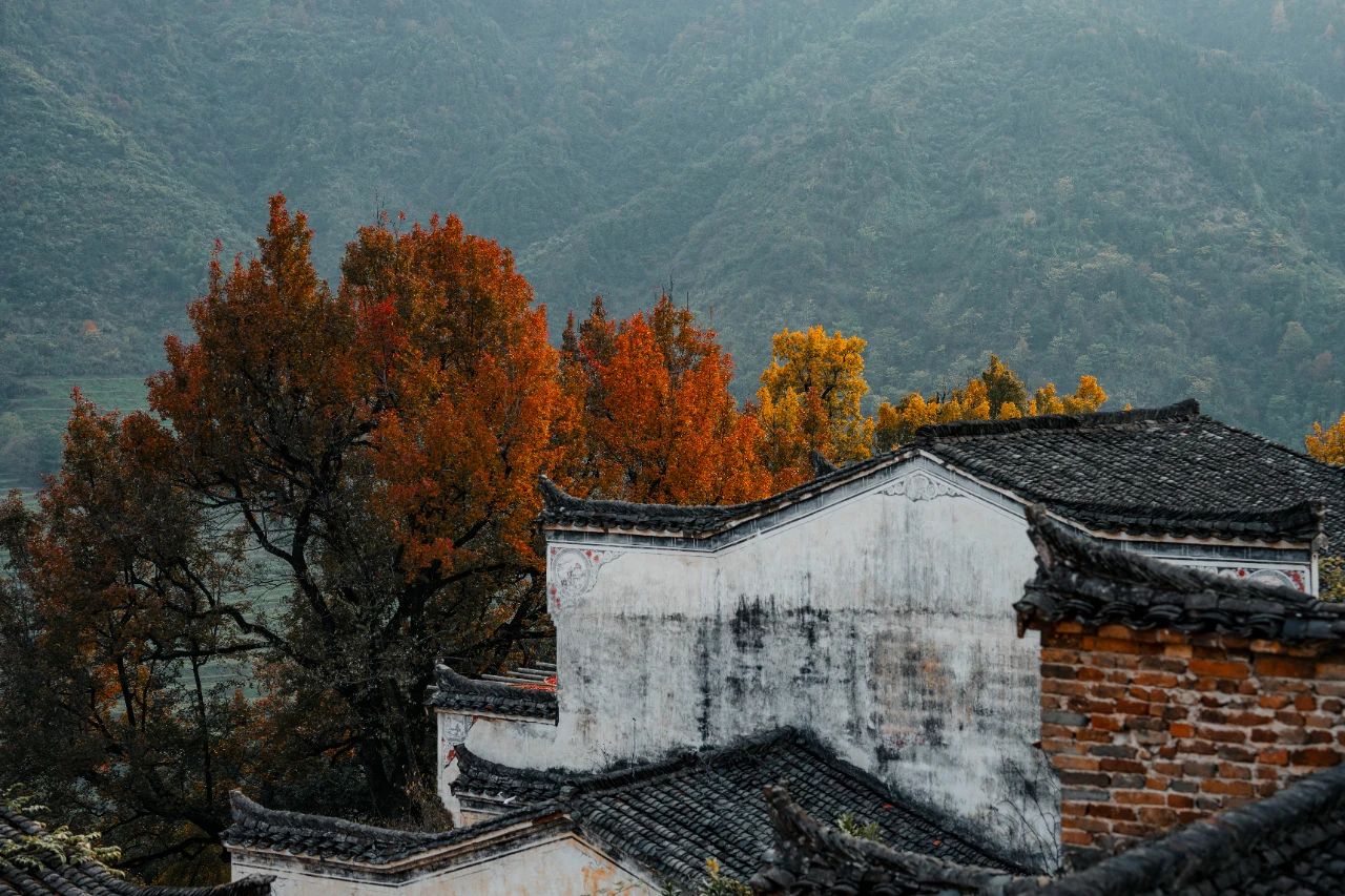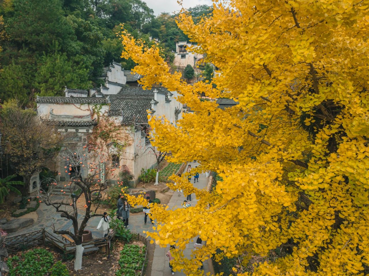 這里的秋色最是豐富多彩。火紅的楓葉和金黃的銀杏妝點著古色古香的徽派建筑,將整個篁嶺染成了一片繽紛的秋色海洋。
