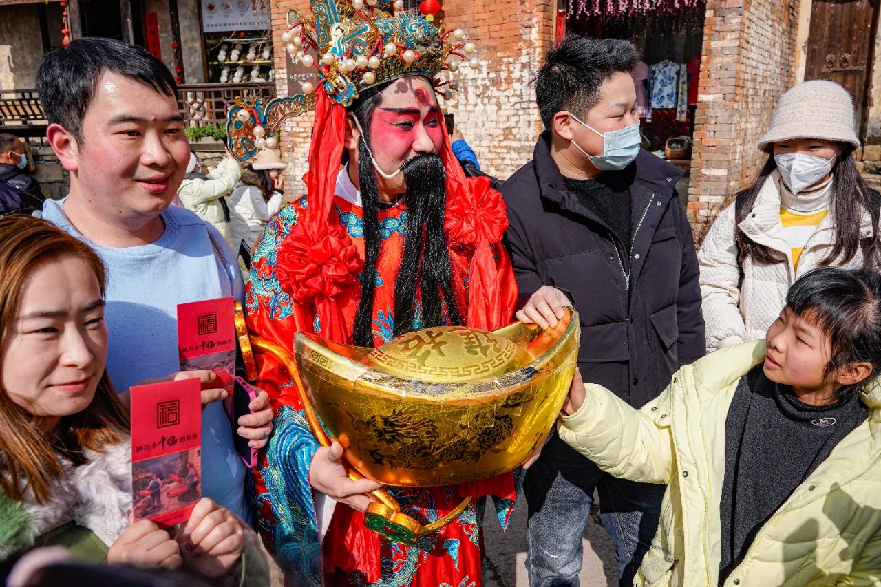 新年遇財(cái)神,好運(yùn)連連財(cái)運(yùn)旺!除夕至初七期間,紅袍加身的財(cái)神與“年神”一起在篁嶺村內(nèi)為大家送福氣,和財(cái)神爺拜年還可能會(huì)爆紅包哦~眾屋廣場(chǎng)的舞蹈串燒更是年代感十足,年味直接拉滿!
