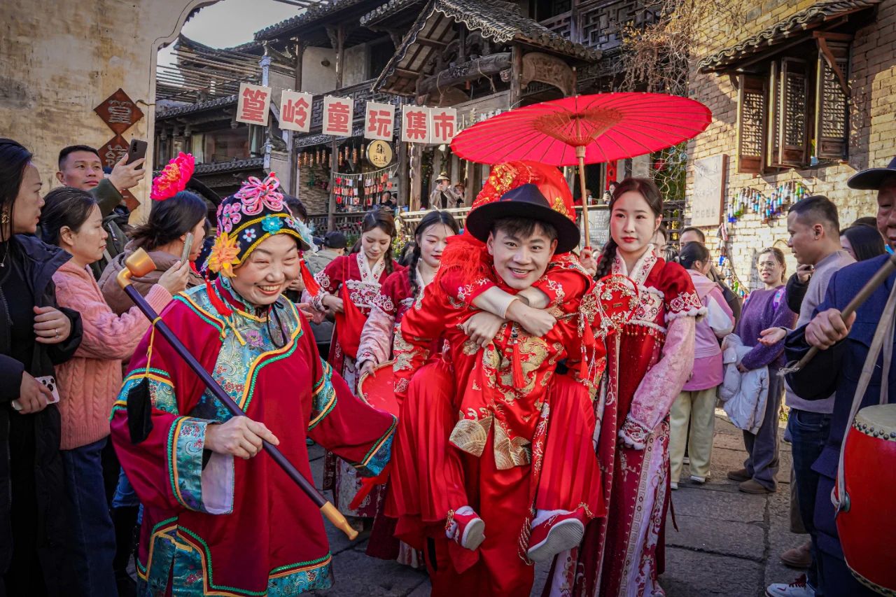 村姑攔門酒、徽州婚俗、儺舞……篁嶺村里的民俗活動互動感十足,讓你沉浸式感受韻味悠長的古村年味,元宵節當天還有猜燈謎、吃湯圓活動等你來體驗。