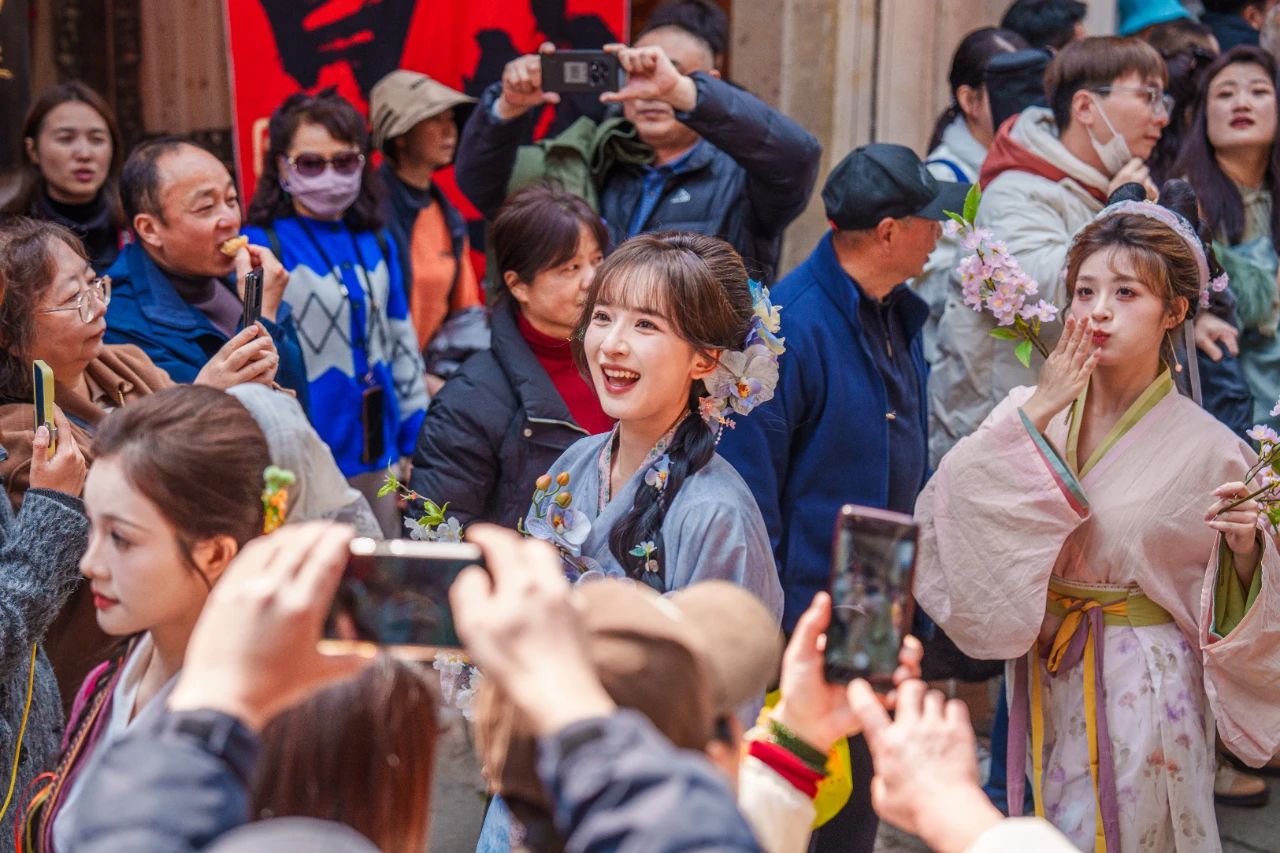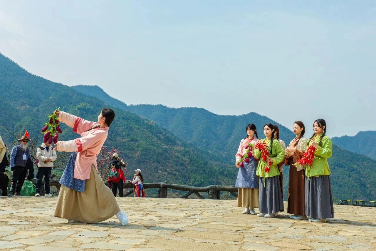 百花生日是良辰,未到花朝一半春。3月8日,以“崖上古村·梯田花?!睘橹黝}的篁嶺第八屆花朝節(jié)浪漫啟幕?;顒?dòng)融合傳統(tǒng)民俗與自然風(fēng)光,一開場就吸引萬余游客齊聚。