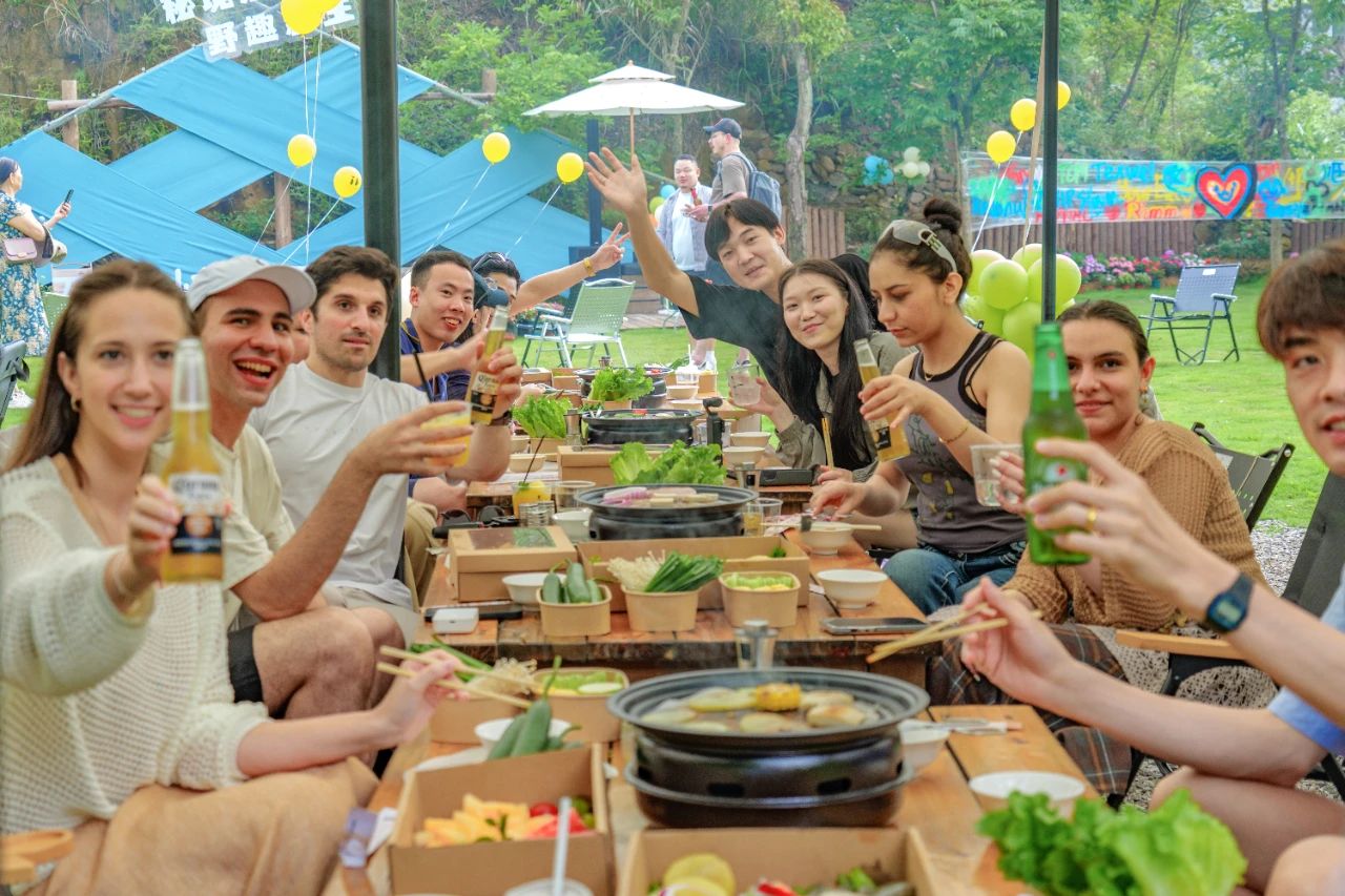 山野廚房的現烤面包香氣彌漫,天幕下的自助燒烤區煙火升騰,烤串與啤酒的香氣混著草木氣息,勾勒出最具煙火氣的“野趣”圖景,來自世界各地的朋友們,都成了共享歡樂記憶的伙伴。