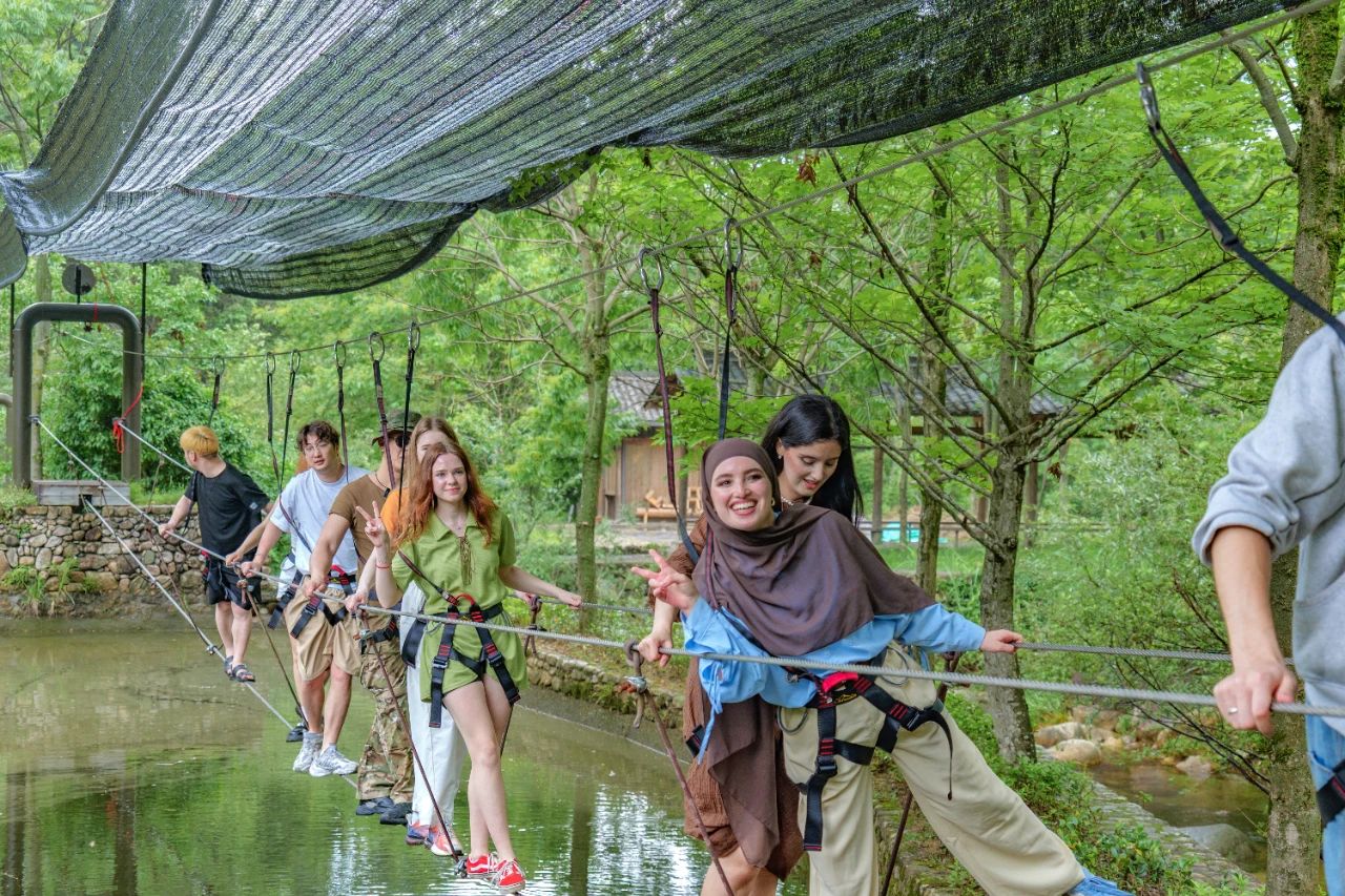 午后的體驗項目成了勇氣與創意的試煉場“英雄闖關”的叢林障礙間,各國達人相繼戴上安全繩,共同挑戰山野秘境中的各個關卡。