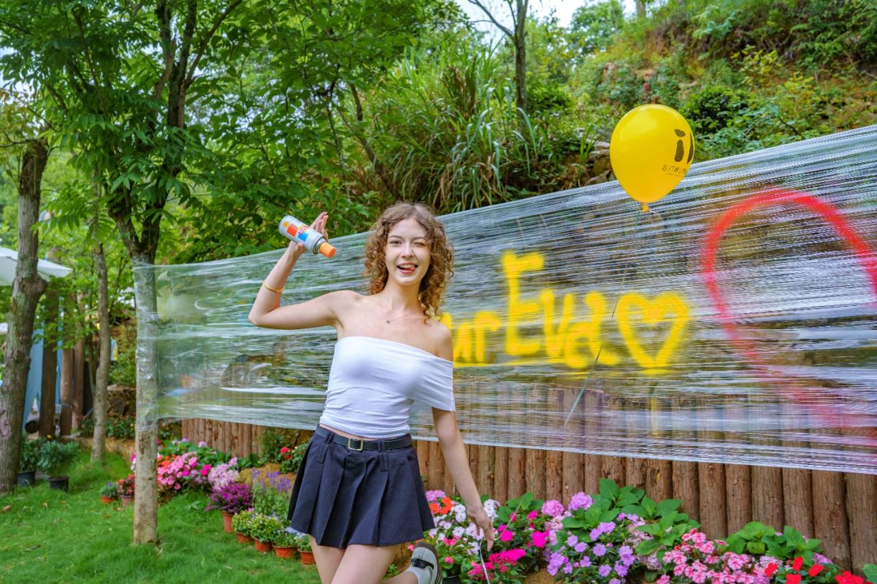 最具創意的當屬涂鴉體驗區,達人們手持彩色噴漆,在透明條幅上盡情留下自己的打卡痕跡,鮮艷的色彩映襯著繁花綠樹,化作流動的藝術展,將最美好的集體記憶留存。