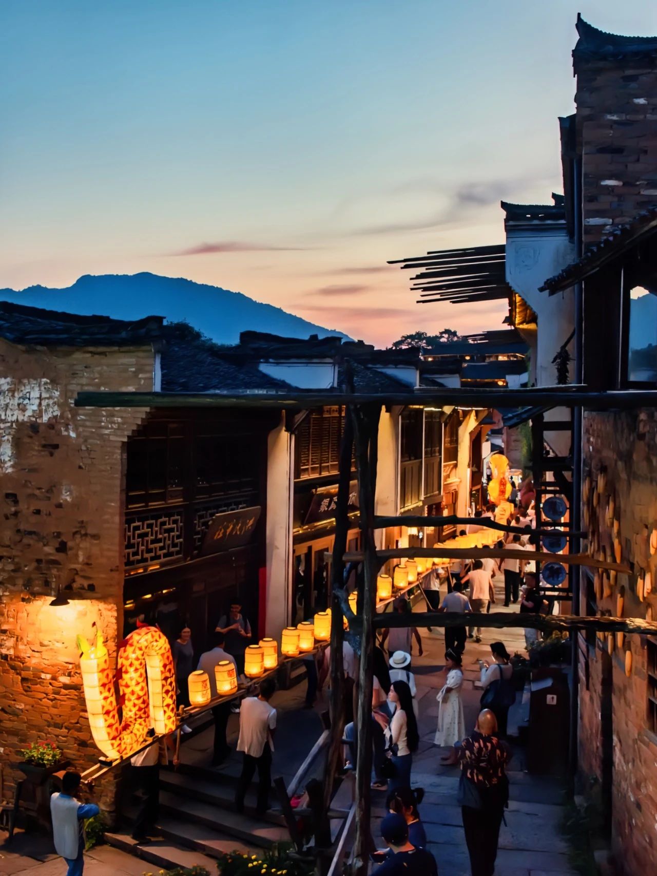 當夕陽沉入山巒,篁嶺的燈火便一盞一盞亮起來。木窗里透出暖黃的光,屋檐下掛著紅燈籠,石板路上映著斑駁的影子……整座山村像是被星光點燃,溫柔得不像話。有人說,這里像極了「紅塵客棧」沒有城市喧囂,只有燈火可親。