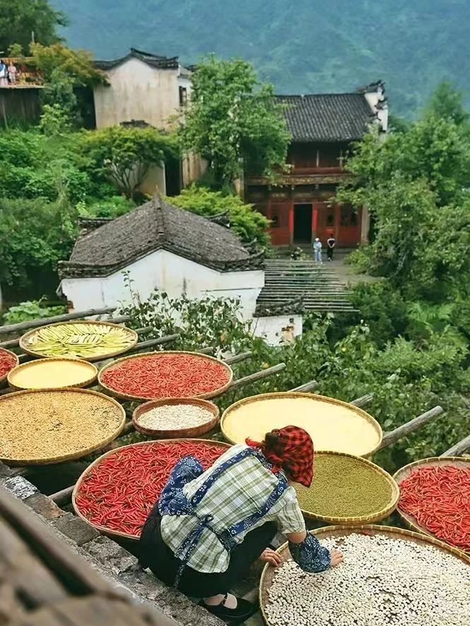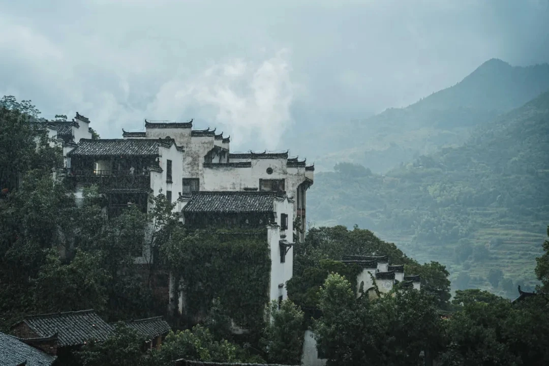 白日里的篁嶺,是一幅徐徐展開的鄉(xiāng)愁畫卷。粉墻黛瓦的徽派建筑依山而建,晨起云霧繚繞,宛如人間仙境。