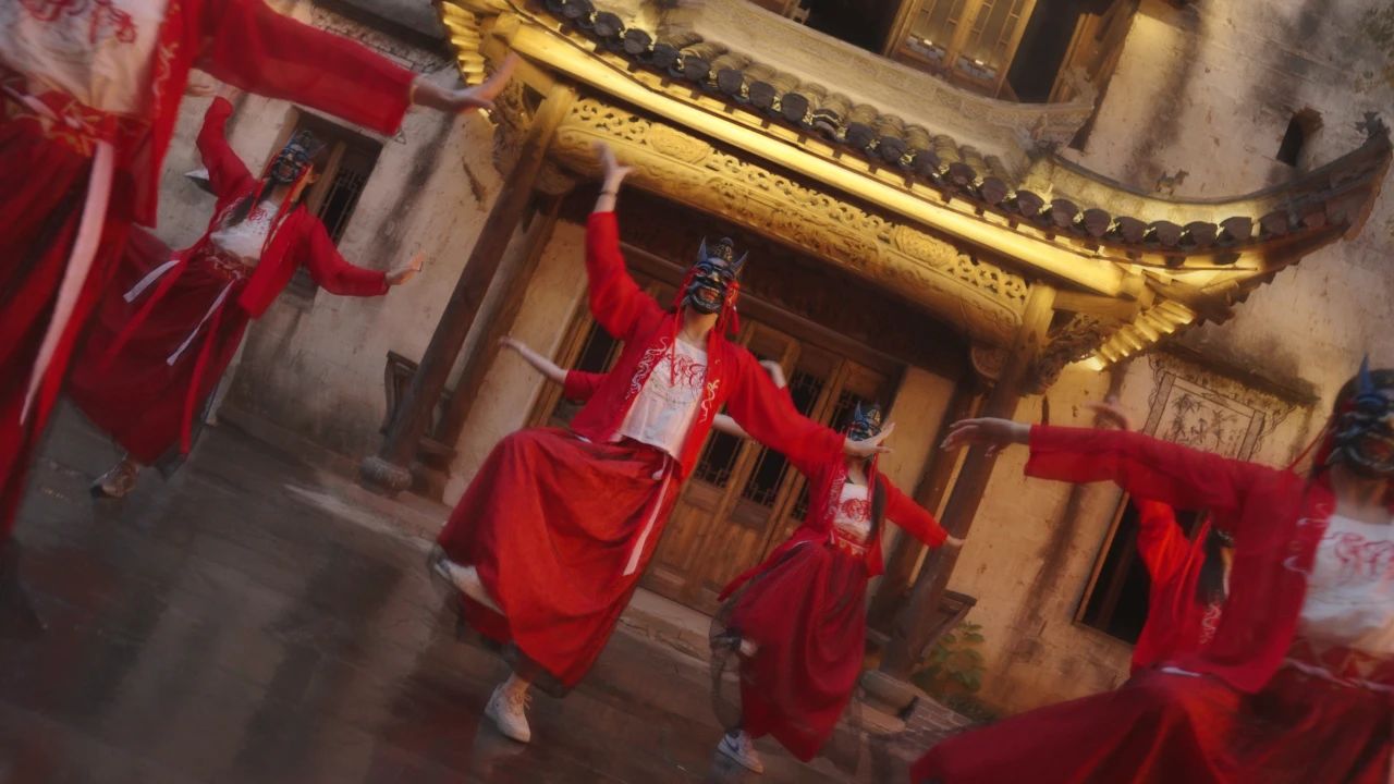 華燈初上,高潮迭起!魚燈廣場(chǎng)神秘儺舞踏響古調(diào);人民禮堂前火壺表演精彩絕倫,炭火騰空瞬間點(diǎn)燃夜空,變臉吐火絕技引爆全場(chǎng)驚呼!鯤茶樓上,《青花瓷》笛聲與民樂合奏飄向街巷,木窗下仰頭聆聽的人群與復(fù)古霓虹里的歌舞表演相映成趣。