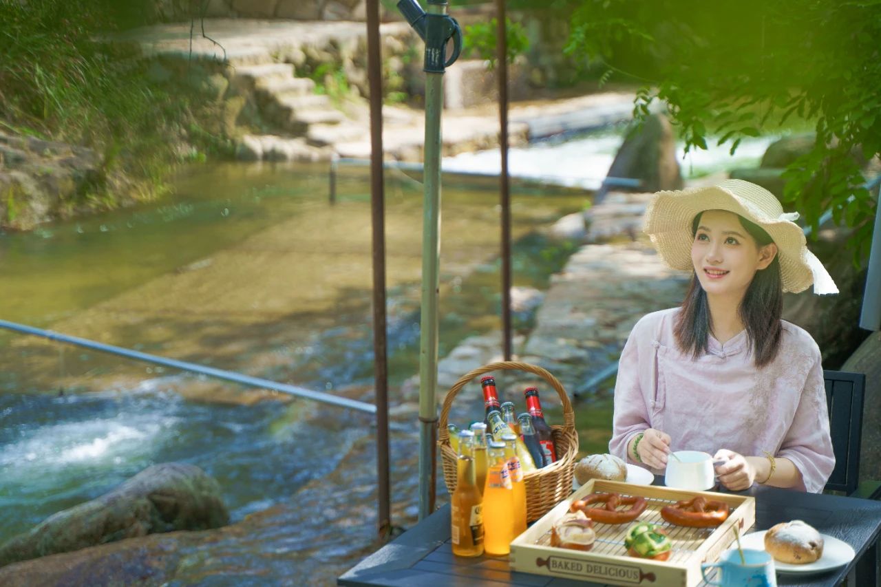 半浸于溪水的卡座,是天然的降溫神器。腳邊小魚穿梭,手中冰飲沁脾,看孩童在淺灘戲水,白云在藍天游走,夏日的自在與愜意在此刻具象化。