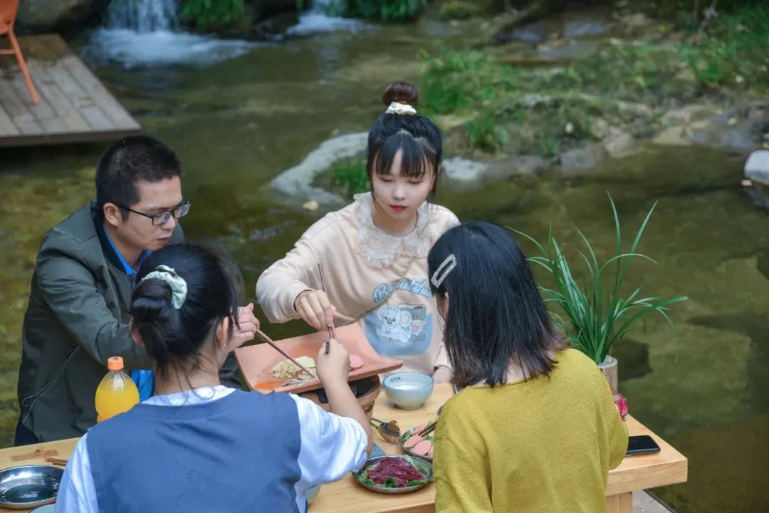 「山里人家」茶樓的臨溪卡座,是偷閑的絕佳之地。一壺皇菊在沸水中舒展,配幾樣手工茶點,看陽光在朋友的側臉上跳躍,聽水流從腳邊蜿蜒而過,時光在此刻慢成一首詩。