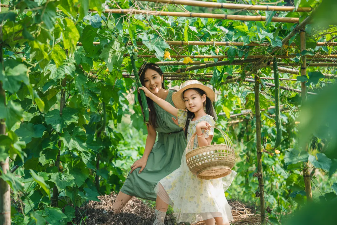 帶著孩子走進專屬有機菜園,親手采摘篁嶺當季的新鮮蔬菜和水果:脆嫩的黃瓜、飽滿的絲瓜、清甜的西瓜等觸摸帶著晨露的葉片,感受泥土的濕潤,體驗最真實的收獲喜悅。