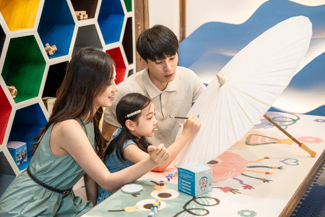 在酒店專屬手作工坊,參與親子非遺體驗項目——傳統油紙傘制作。在專業老師指導下,家長和孩子共同協作,完成繪圖、裱糊等步驟,親手制作一把獨一無二的油紙傘。這不僅是一次趣味手工,更是對傳統文化的觸摸,成品可帶回家珍藏,成為獨特的旅行紀念。