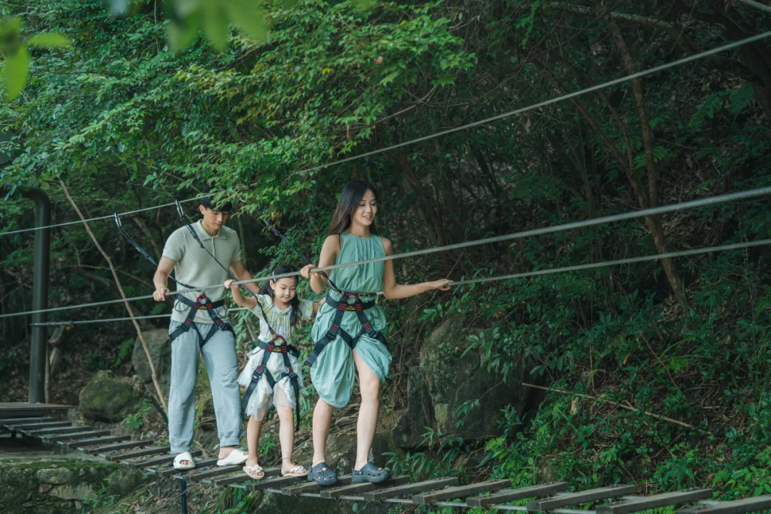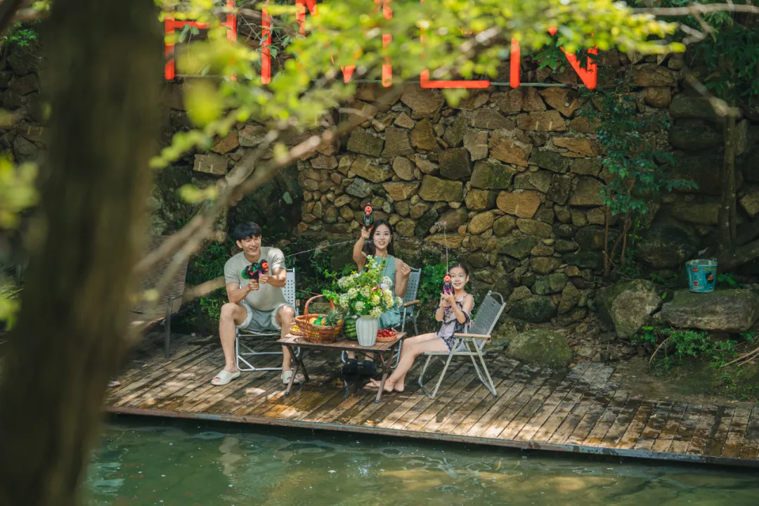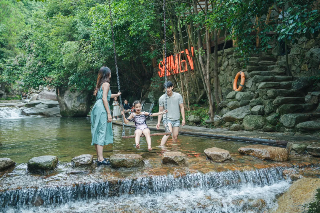 直接踏入清澈見底的溪水中,享受打水仗、踩水花的純粹親水樂趣,悠閑蕩起溪面上的水上秋千,感受水花輕濺的愜意。