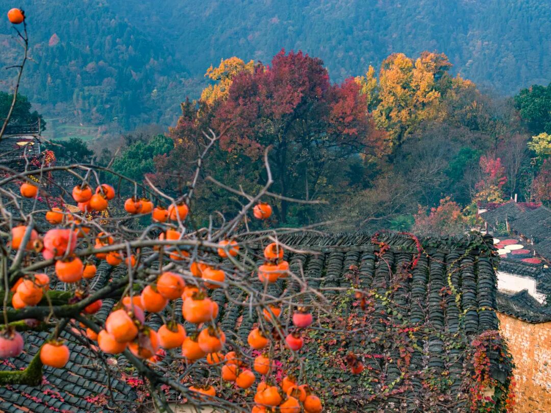 篁嶺的秋,也是掛在枝頭的。瞧,那如點點小紅燈籠的,是柿子。它們俏皮地點綴在黛瓦馬頭墻之間,用最熱烈的紅,溫暖著漸深的秋意,仿佛在輕聲祝愿每一個路過的人——“柿柿如意”。