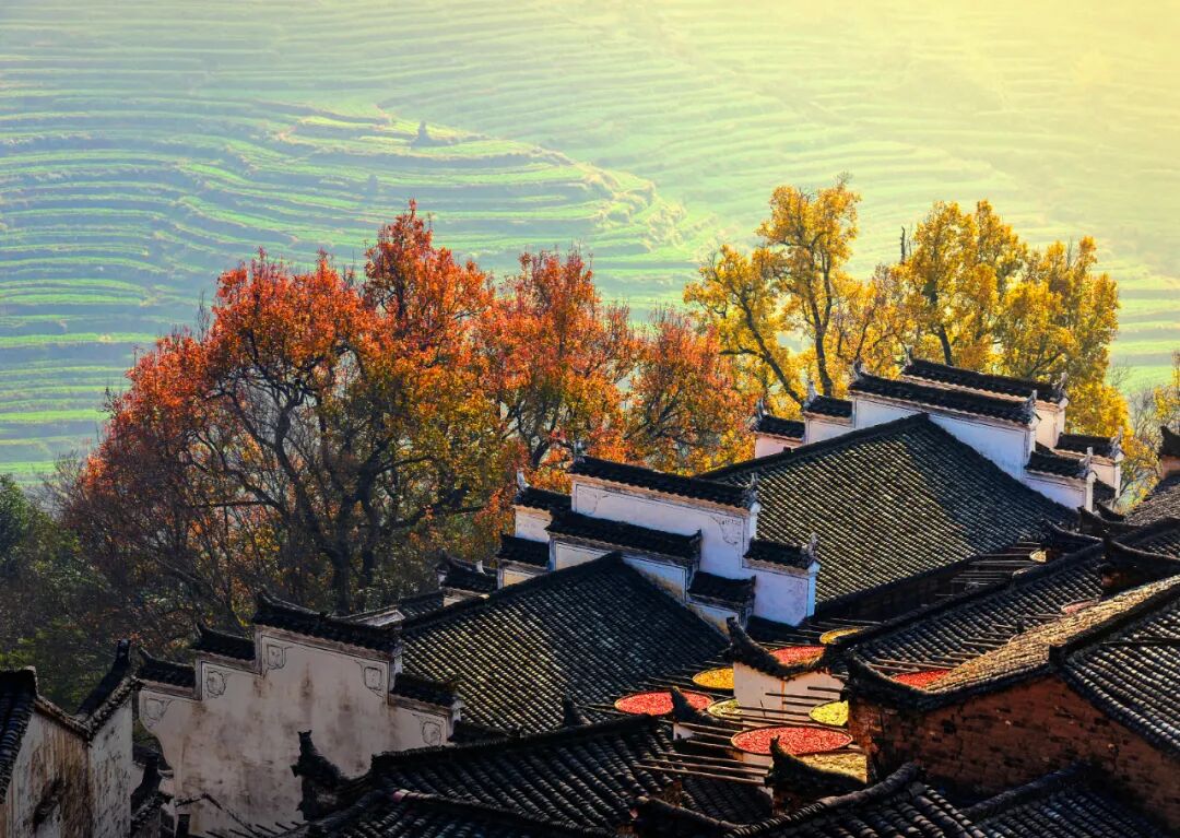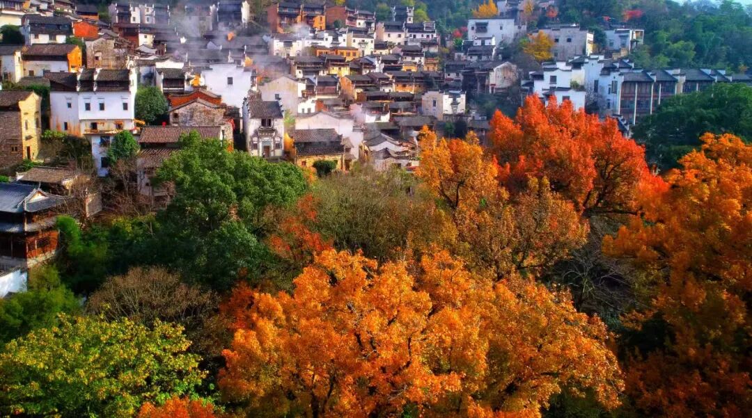待到深秋,千年香楓徹底紅透,與古樸的徽派建筑、斑斕的曬秋景觀交相輝映,勾勒出“樹樹皆秋色,山山唯落暉”的絕美詩意。