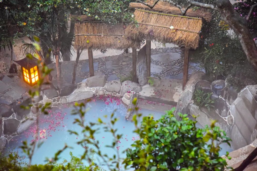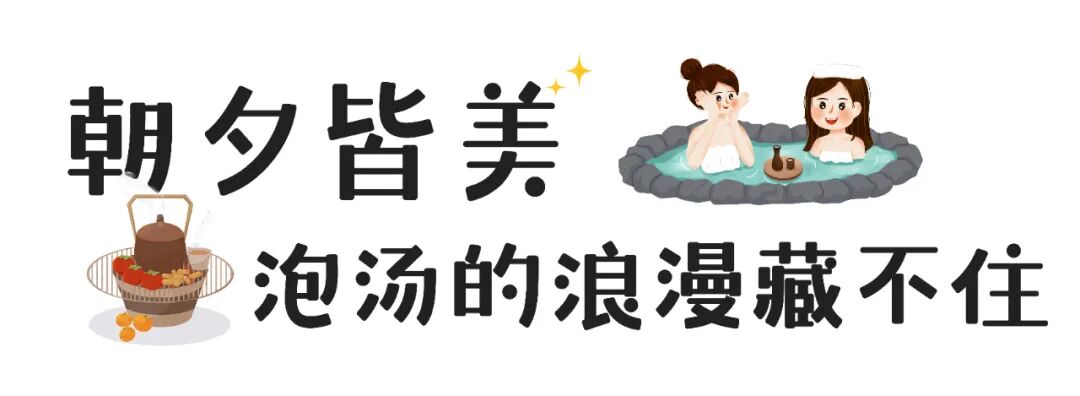 最讓人安心的是,湯池24小時(shí)都在循環(huán)過濾,每天還會補(bǔ)新水、做消毒,換一身松軟的浴衣坐進(jìn)去,不用有半點(diǎn)顧慮。溫?zé)岬乃^膝蓋、腰腹,剛才逛古村、踩落葉時(shí)攢下的倦意,像被溫水悄悄揉化了。